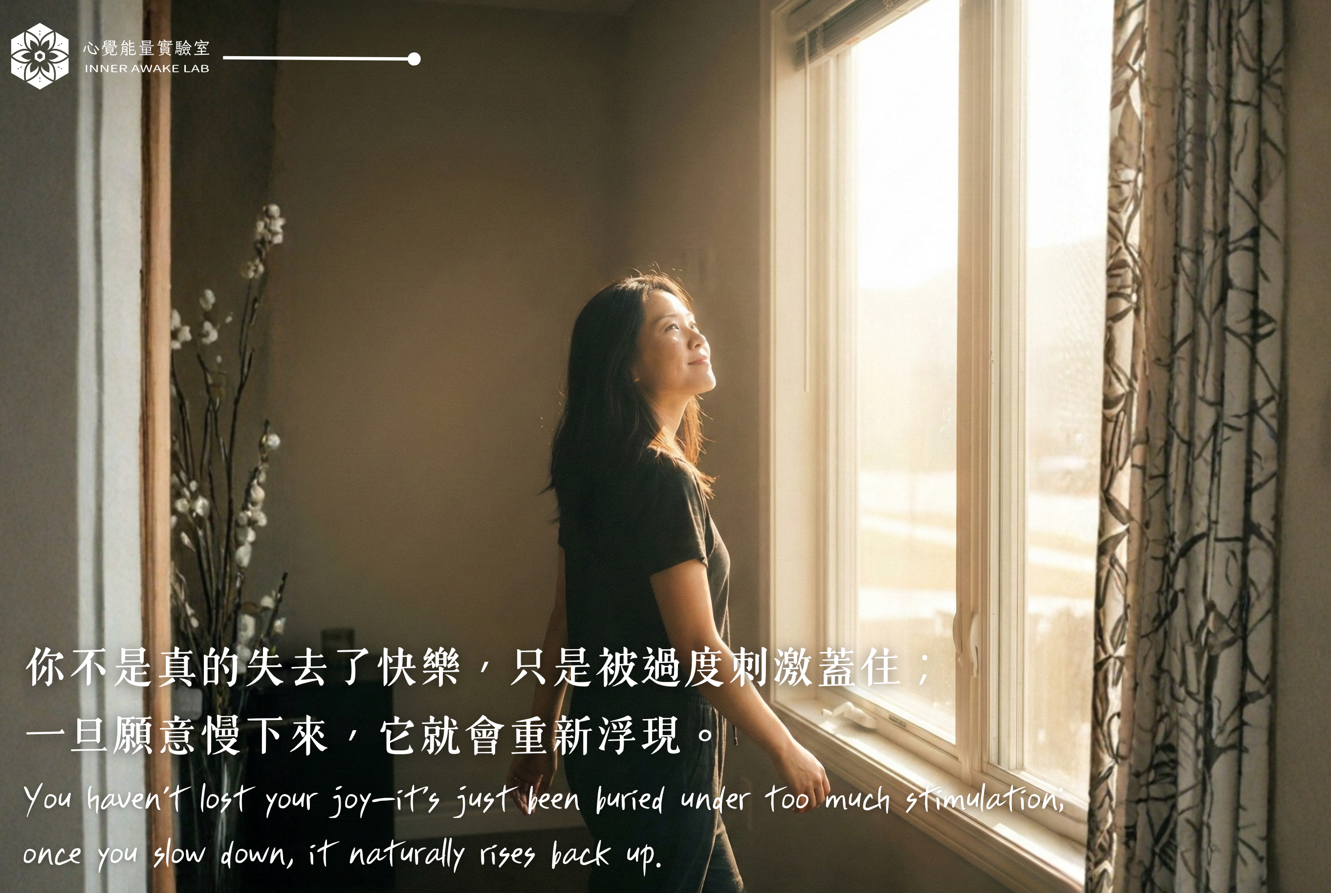 當大腦變個乾淨、身心保持連結、注意力穩住時,快樂就會變得很簡單,它不需要刻意追求,不需要過度刺激,更不需要用什麼來跟別人比較,它只會在你放慢的時候,自然的浮現上來。