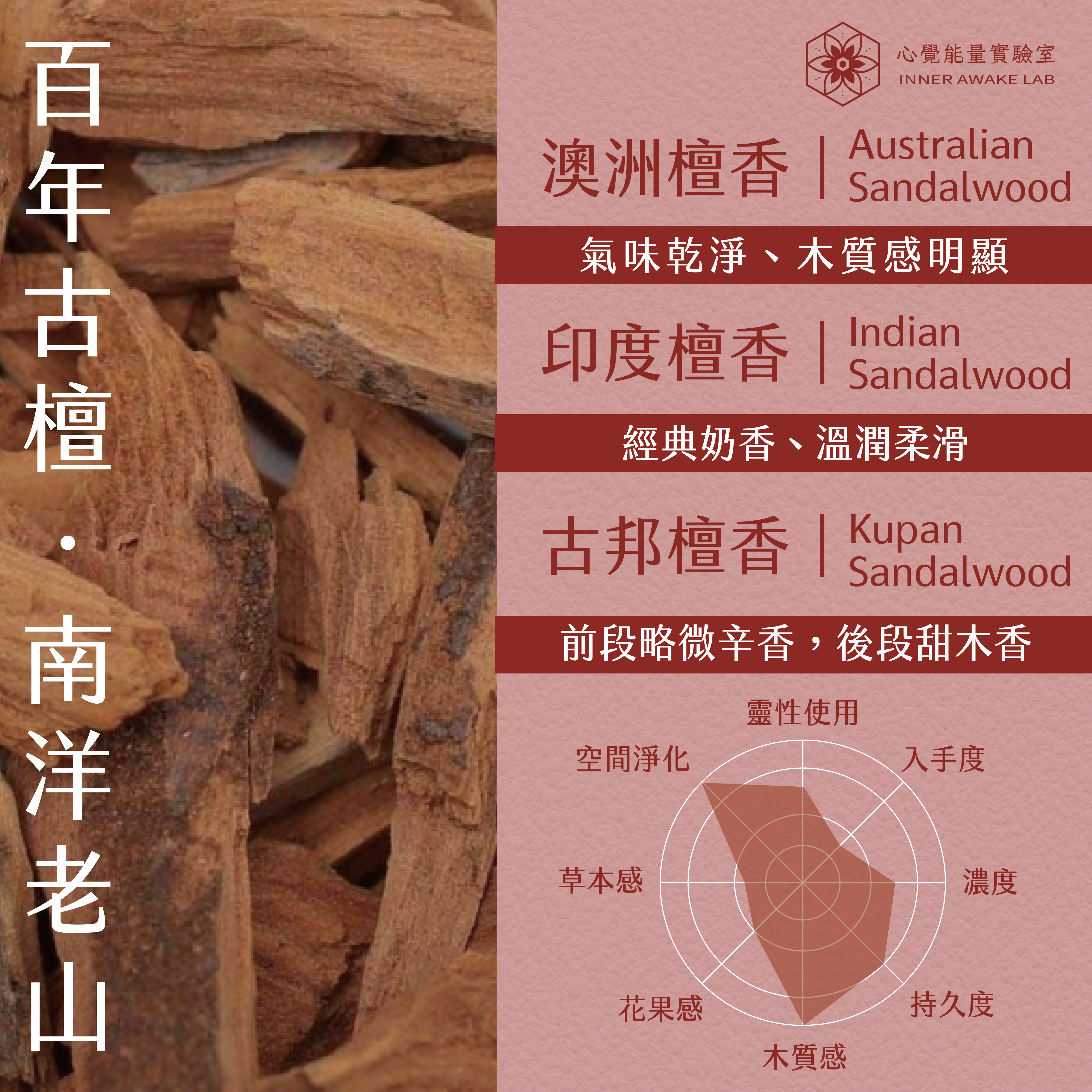 成分:澳洲檀香樹枝、印度檀香、古邦檀香
