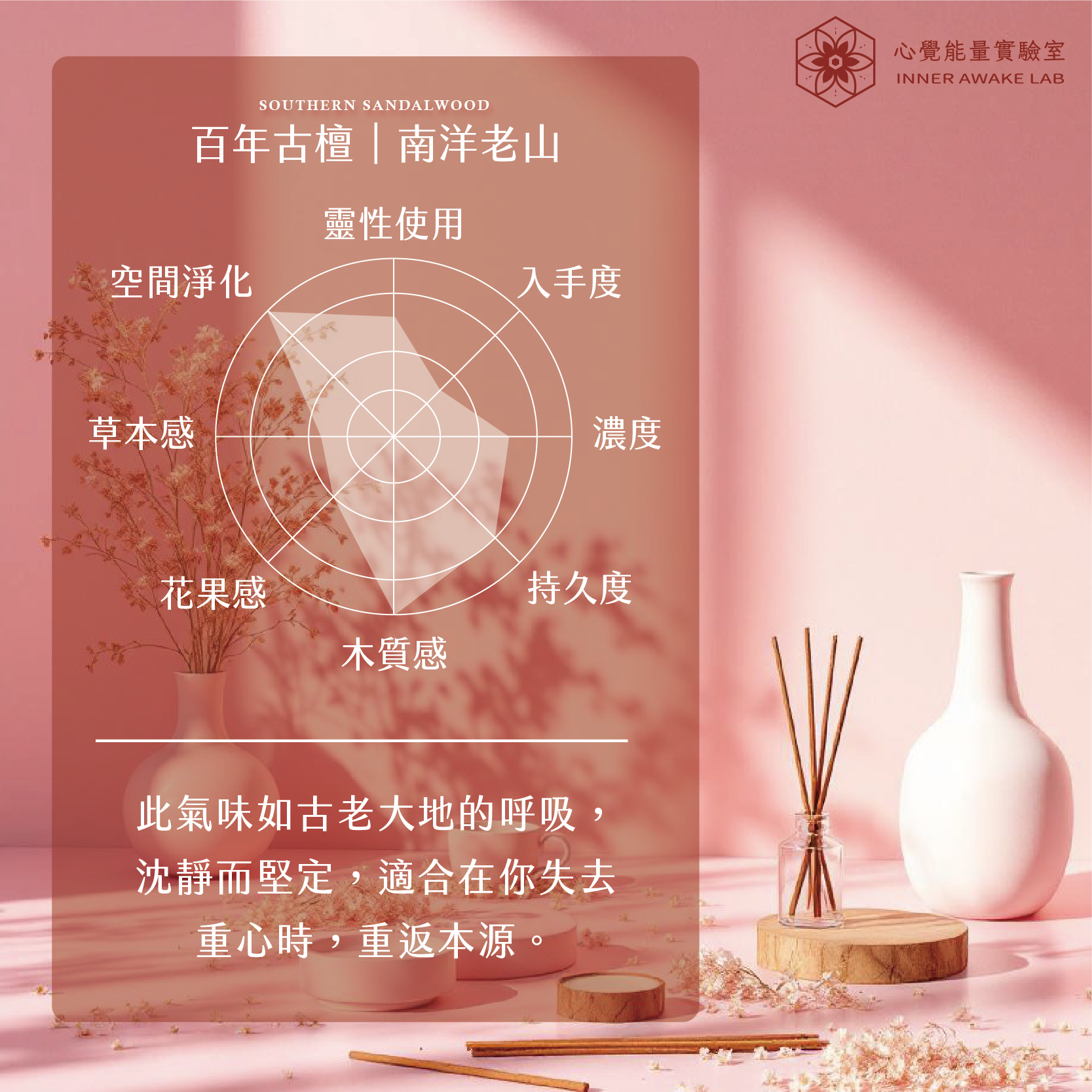 南洋老山,將時間放緩,讓檀香的氣息輕輕圍繞,成為你日常中的安定陪伴。