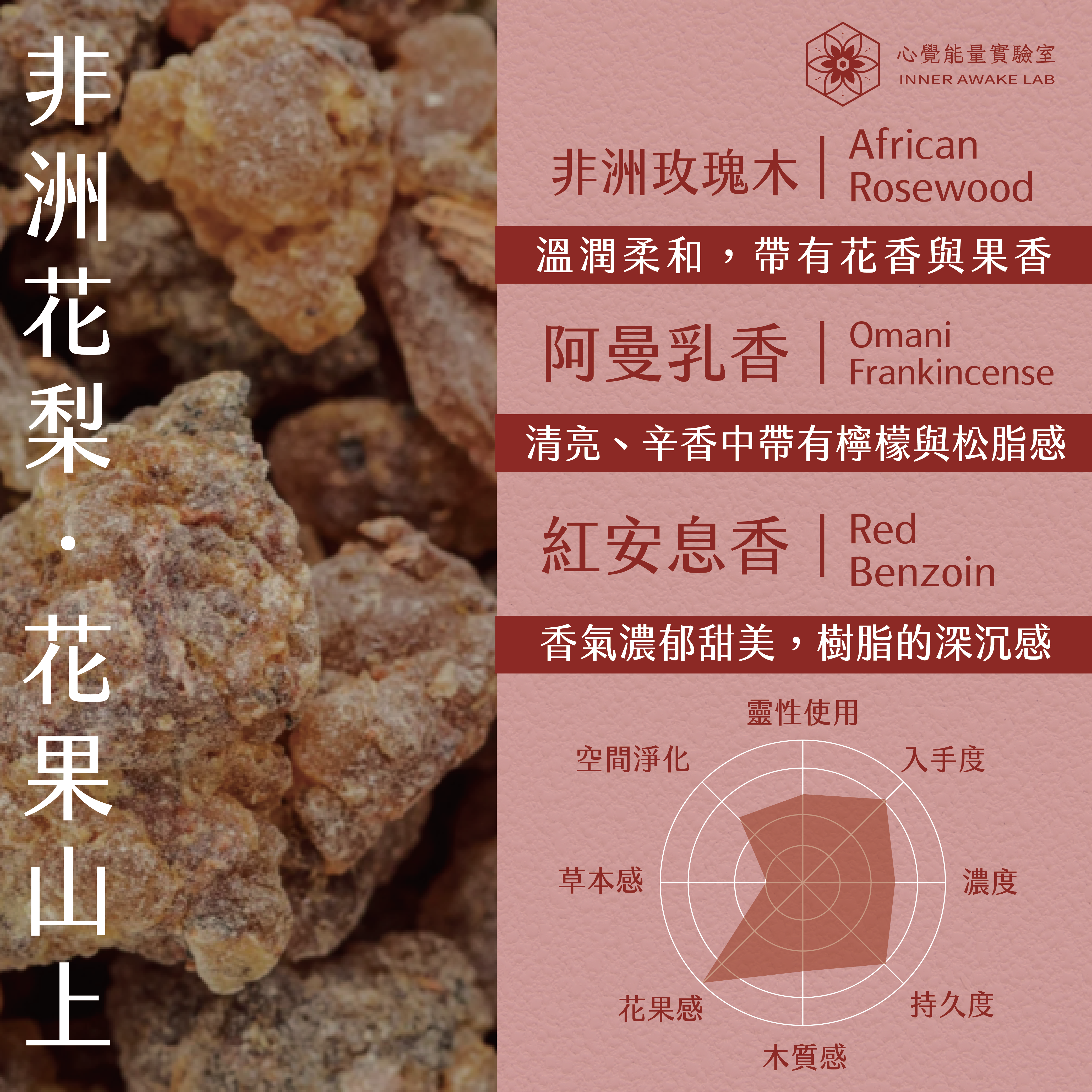 成分:正非洲玫瑰木、老阿曼乳香、特級紅安息香